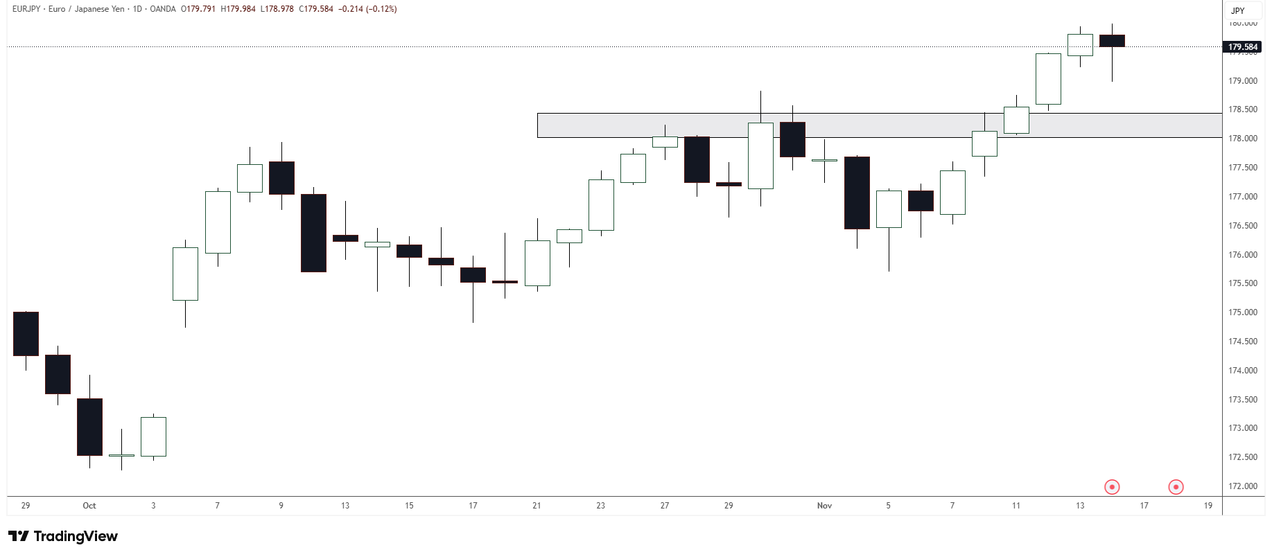 See daily chart of EURJPY below for the discussion that follows.