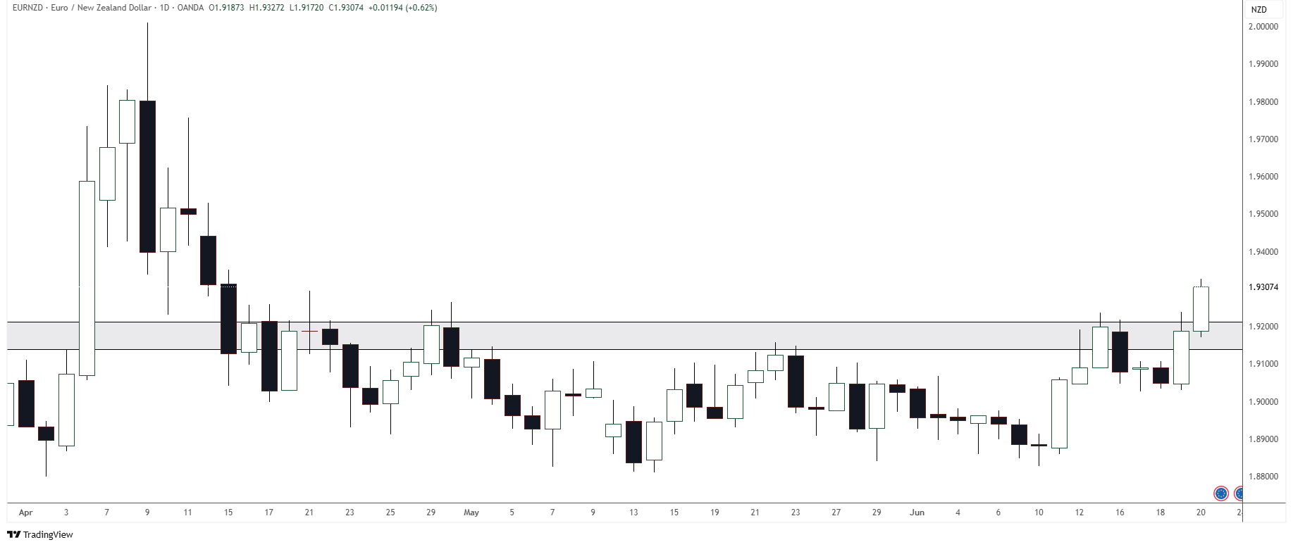 EURNZD broke resistance. I will be looking to go long if there’s a retracement to support (prior resistance) and I see bullish candlestick price action.