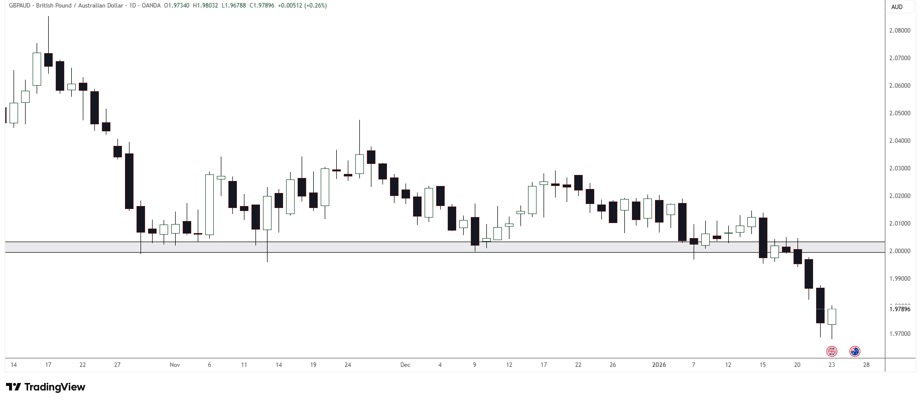 GBPAUD broke support this past week. If price retraces back to resistance (previous support), I will likely go short if I see bearish candlestick price action.