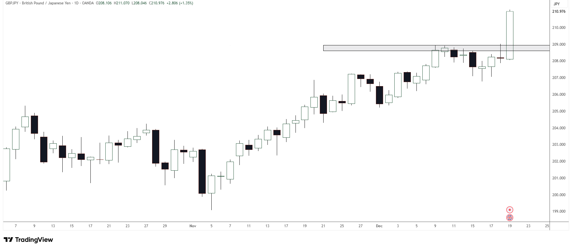 GBPJPY is making higher highs and higher lows. If price retraces to support (prior resistance), I will likely go long if I see bullish candlestick price action.