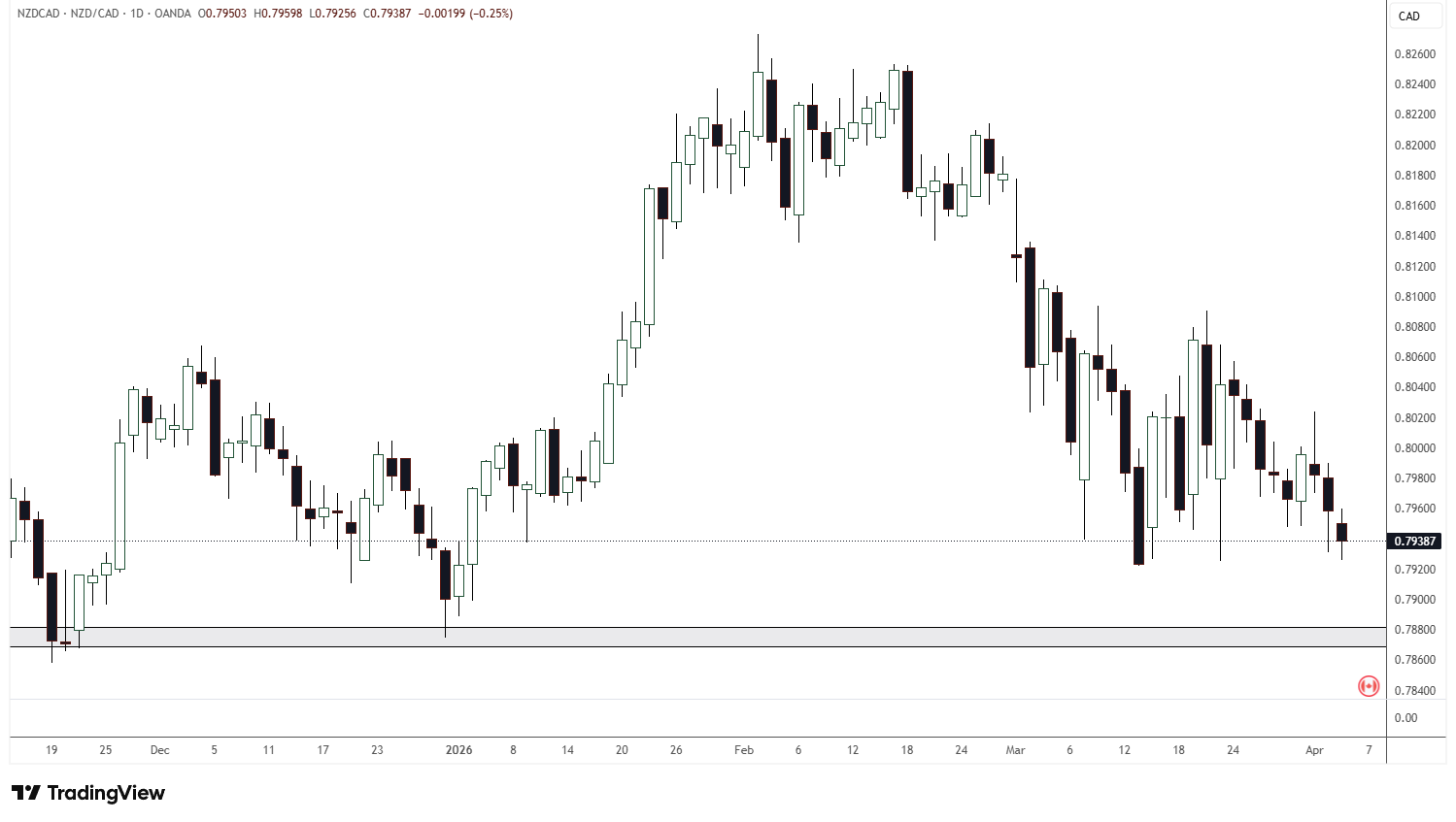 See the daily chart of NZDCAD below for the discussion that follows.